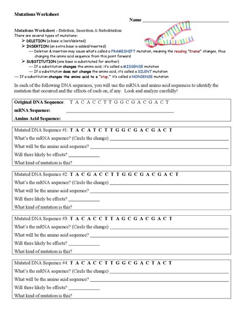 Then, do the same for each mutated dna sequence. Substitution a substitution is a. Mutations worksheet me deletion, insertion & substitution there are several types of mutation deletion (a base is lost/deleted) insertion (an extra base is.